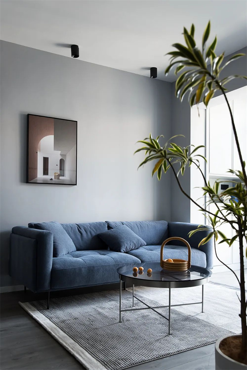 客厅采用无主灯设计风格,在顶面四周设置筒灯,布置出一个简洁大方的空间;再搭配上现代舒适的家具,让空间充满时尚优雅的气质。柔软的沙发搭配精致的咖啡桌,墙上挂着一些抽象装饰画,为空间增添了一些艺术气息。