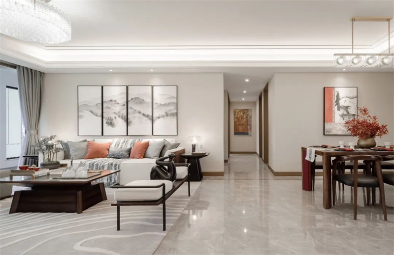 本案业主钟情于传统文化的深厚底蕴,也喜欢现代生活的舒适与时尚。在这样的背景下,选择了新中式风格,同时融入现代简约的设计理念,在空间布局、色彩搭配和家居元素上进行创新,为业主打造了一个融合古典与现代的温馨家园。让我们一同走进这个充满新中式韵味的家,感受传统文化的独特魅力。