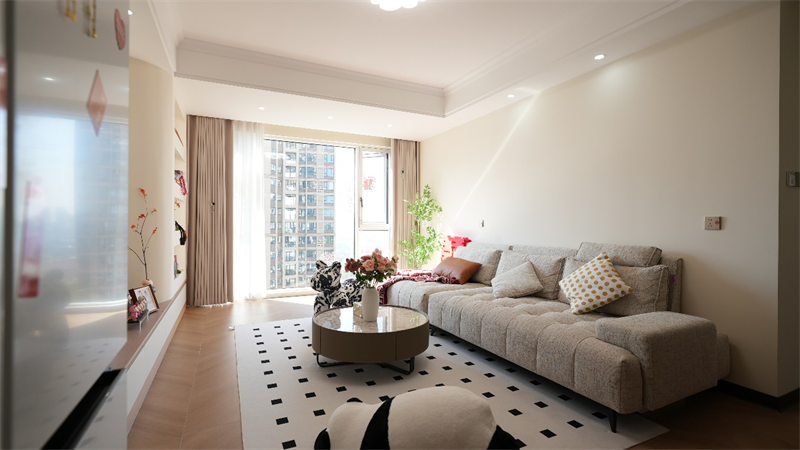 客厅里,米白沙发搭配几何地毯,点缀一抹红喜字与熊猫玩偶,传统与童趣悄然融合,让家在简约中透出满满温度与个性。这不仅是一次装修,更是一种松弛而有爱的生活方式的开启。